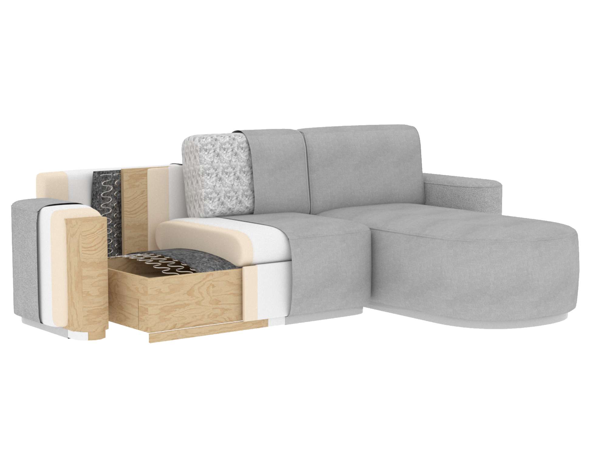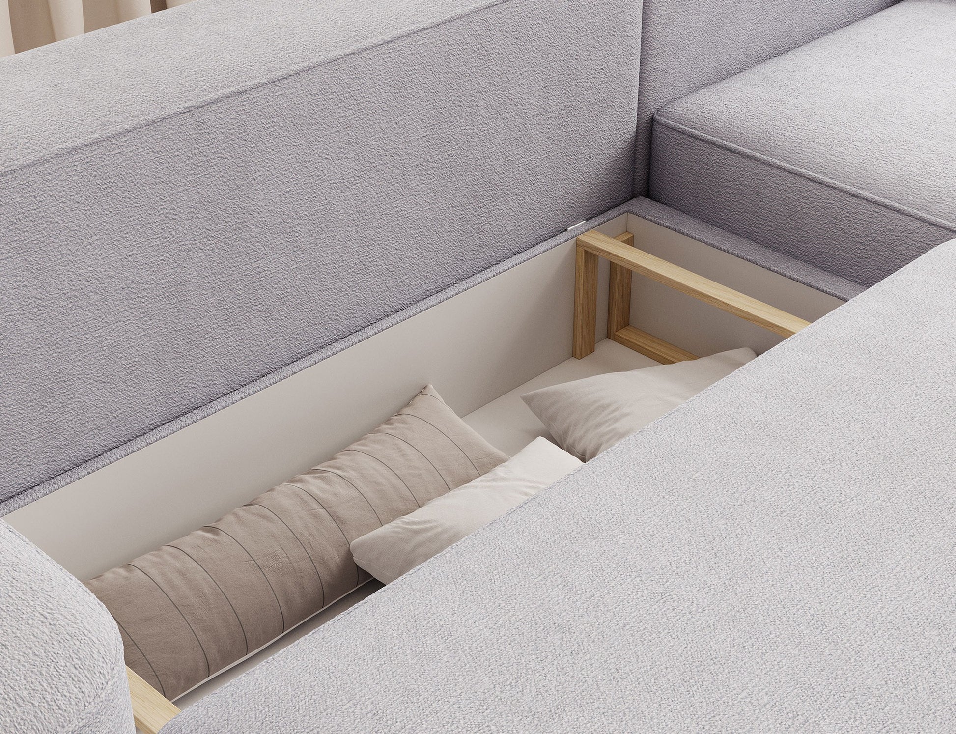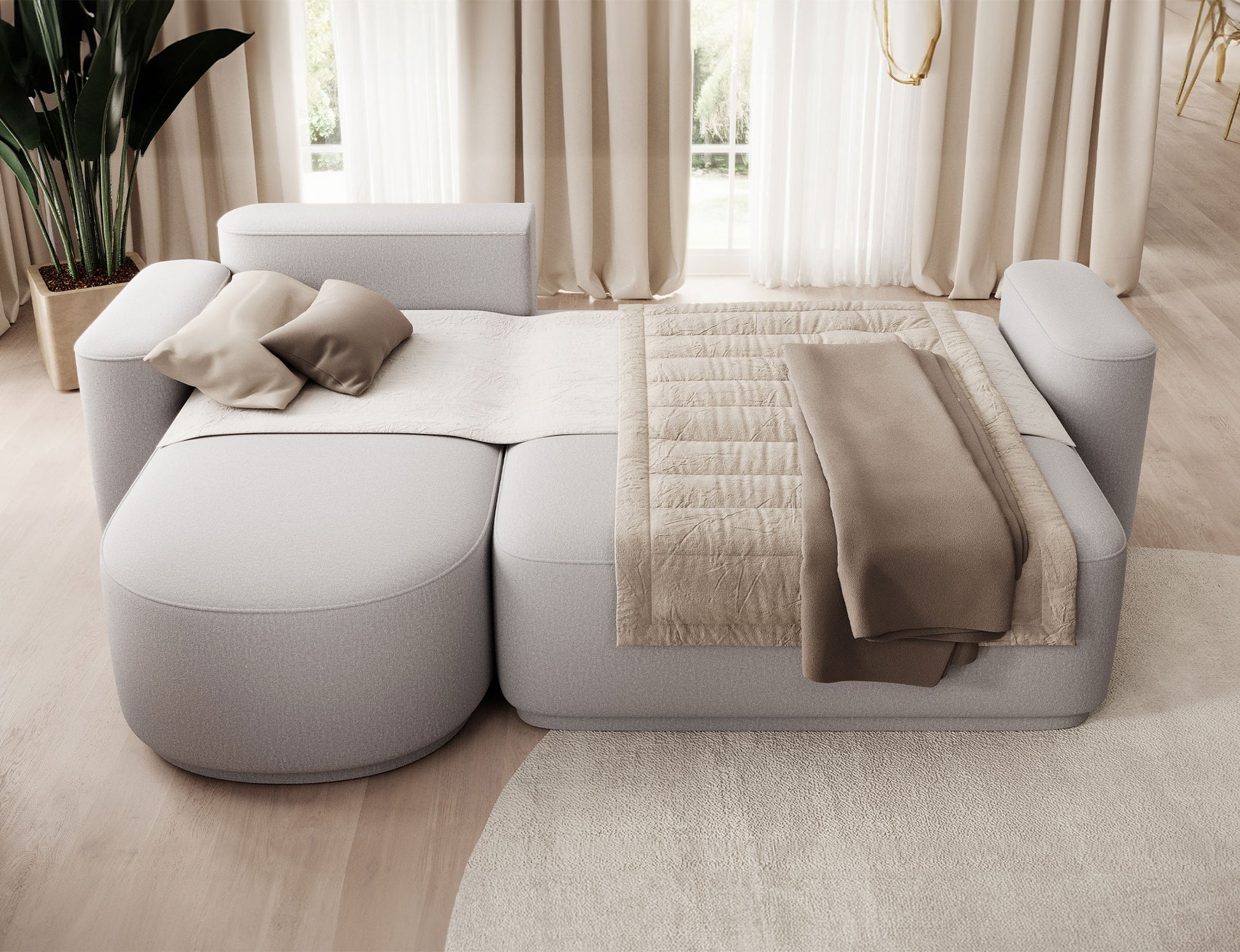 Aurumm 4 Seater Storage Sleeper Chaise Sofa - Light Grey