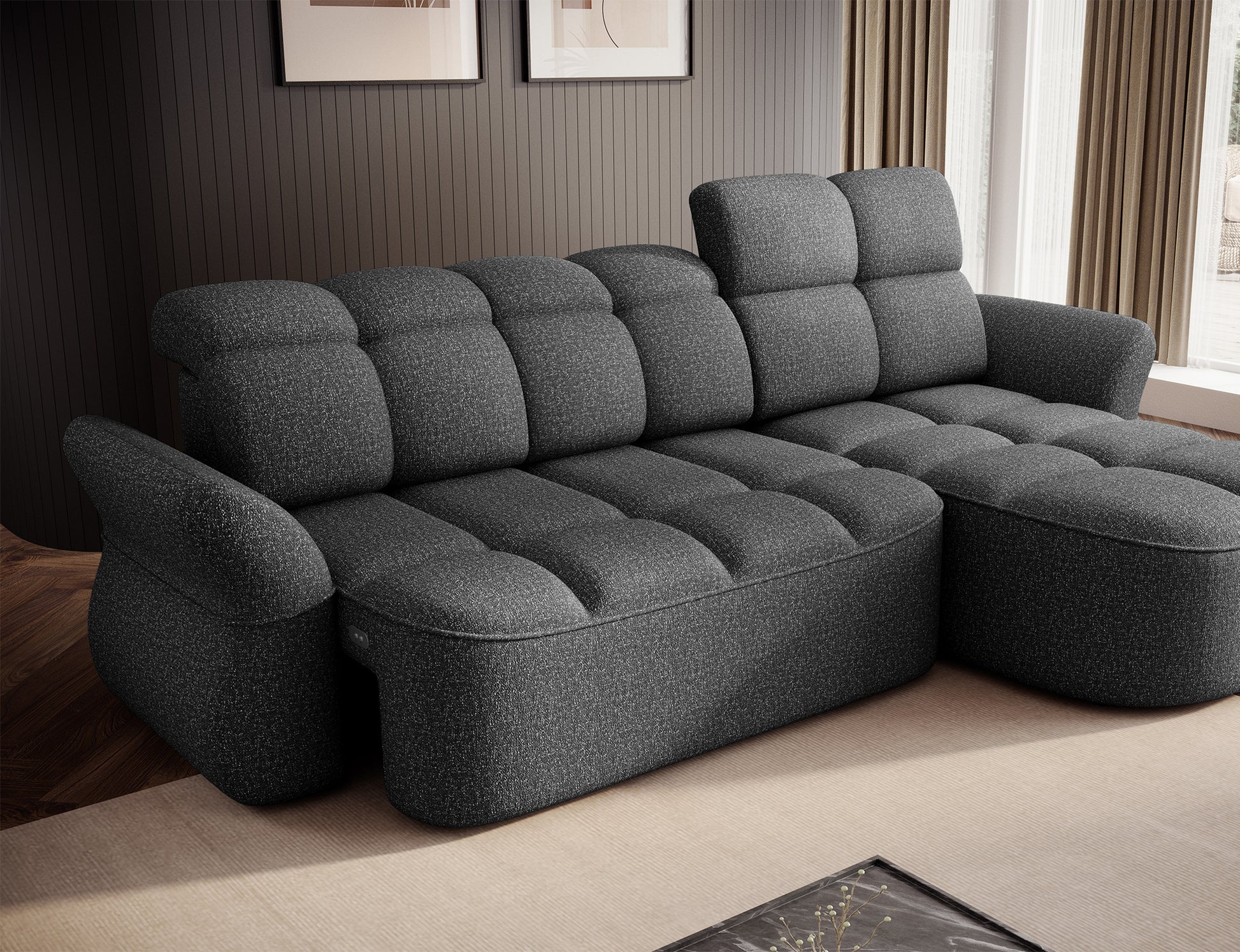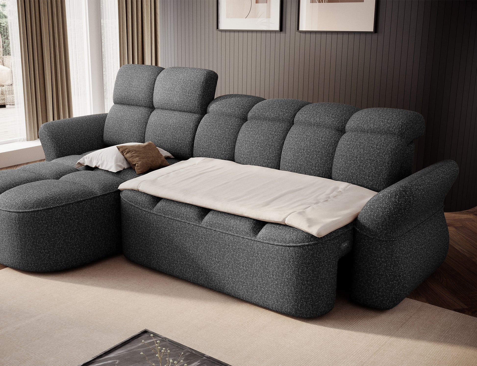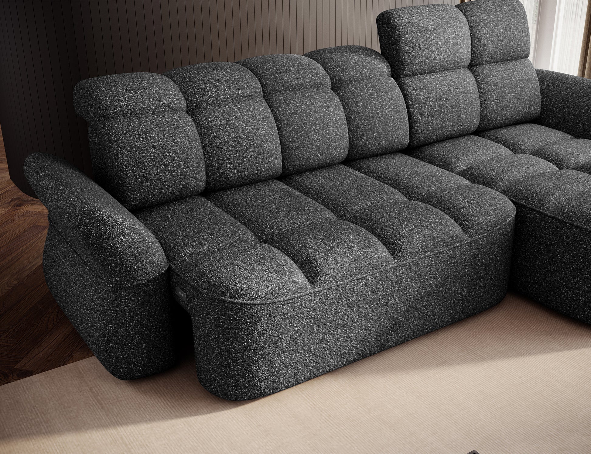 The Beneth corner storage sleeper chaise sofa is the perfect blend of modern design and supreme comfort. Its spacious seat, filled with B-type wave springs and high-resilience HR3030 foam, offers the ideal balance between softness and support.