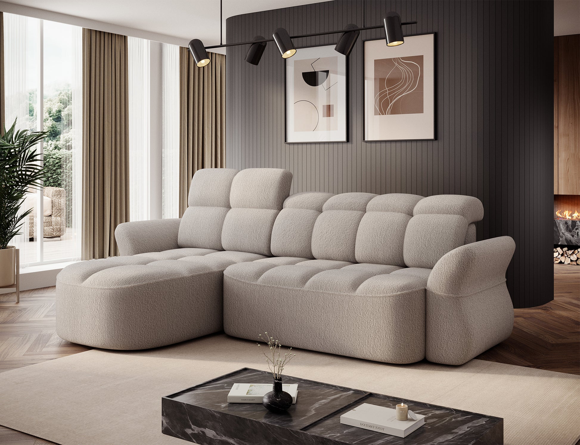 The Beneth corner storage sleeper chaise sofa is the perfect blend of modern design and supreme comfort. Its spacious seat, filled with B-type wave springs and high-resilience HR3030 foam, offers the ideal balance between softness and support.