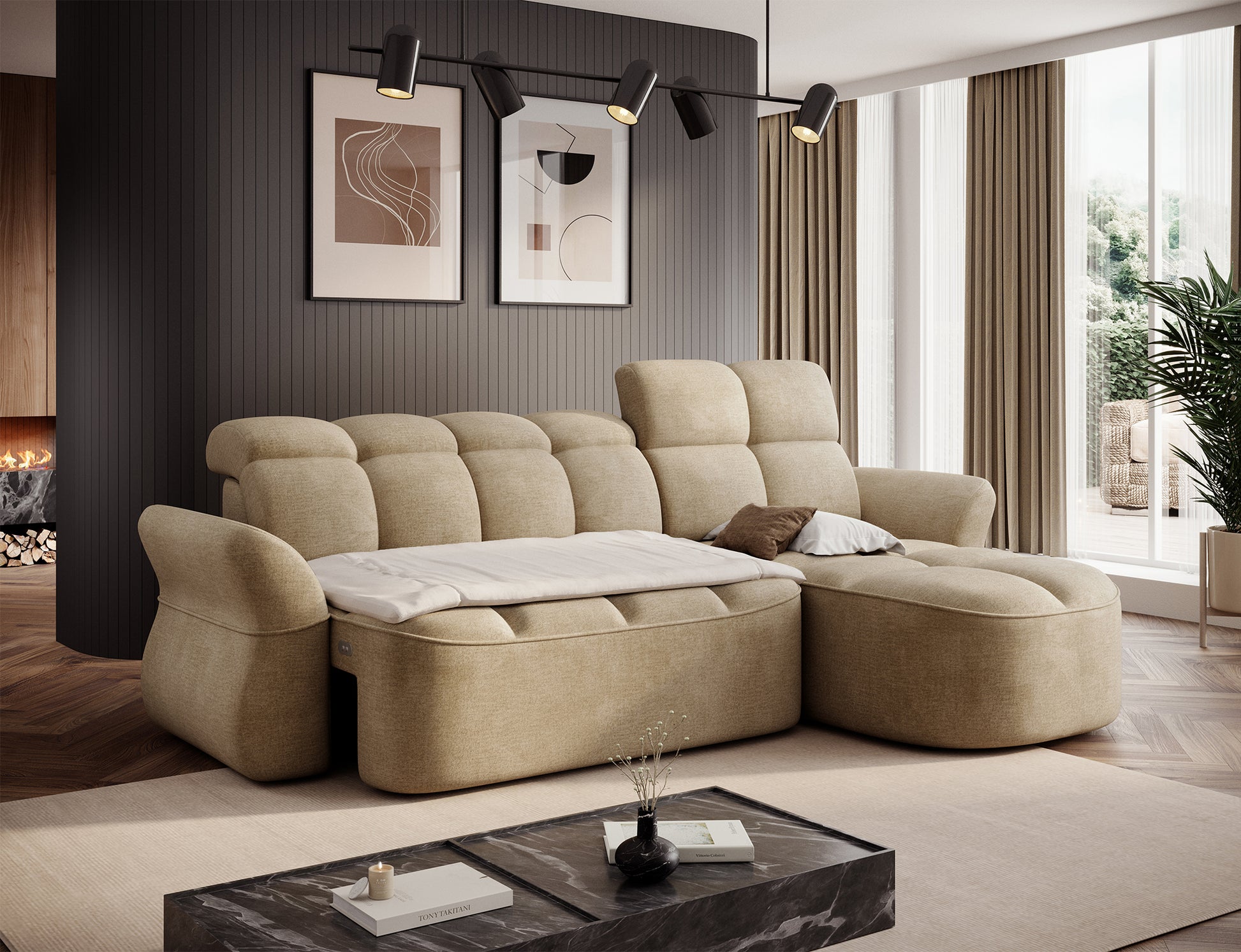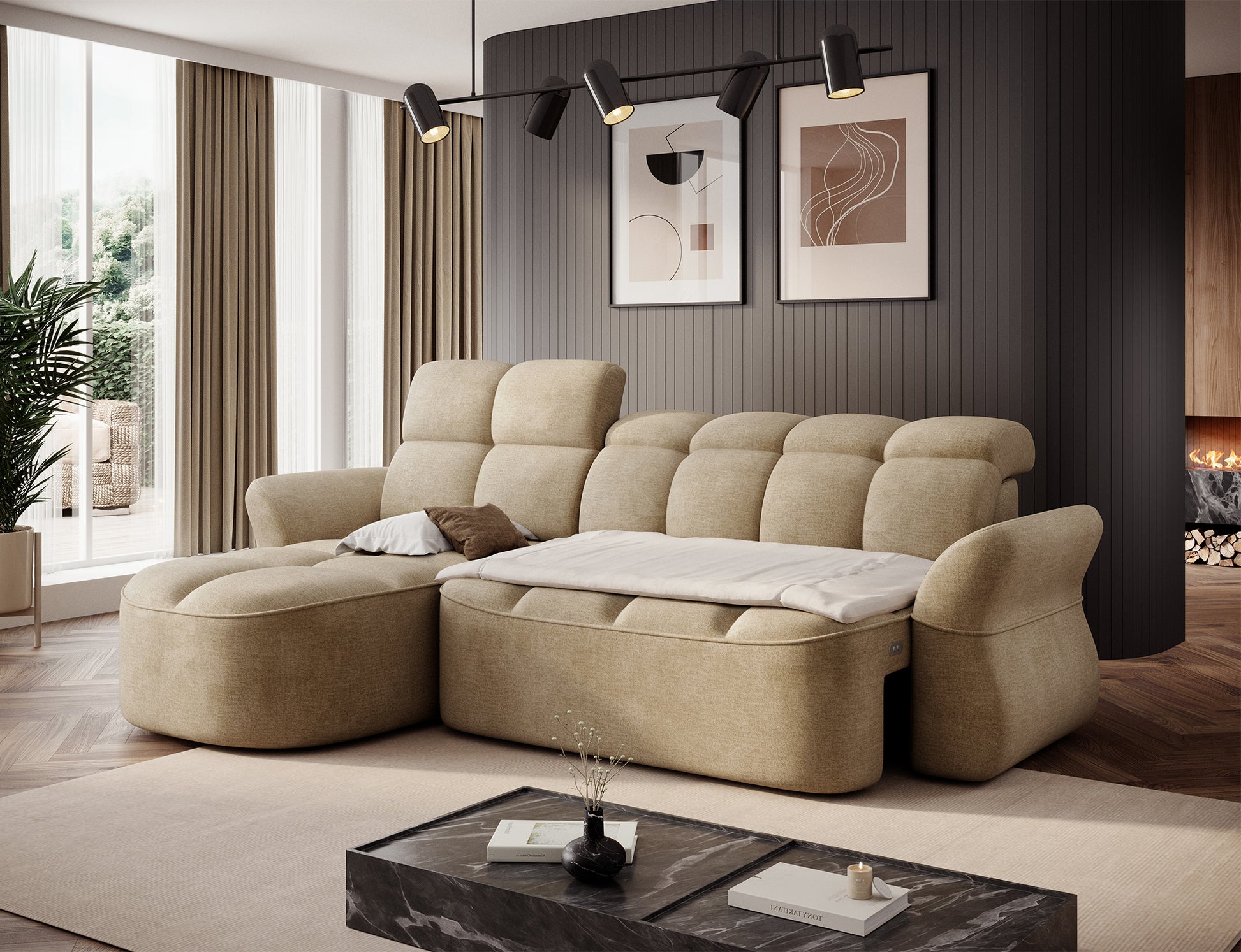 The Beneth corner storage sleeper chaise sofa is the perfect blend of modern design and supreme comfort. Its spacious seat, filled with B-type wave springs and high-resilience HR3030 foam, offers the ideal balance between softness and support.