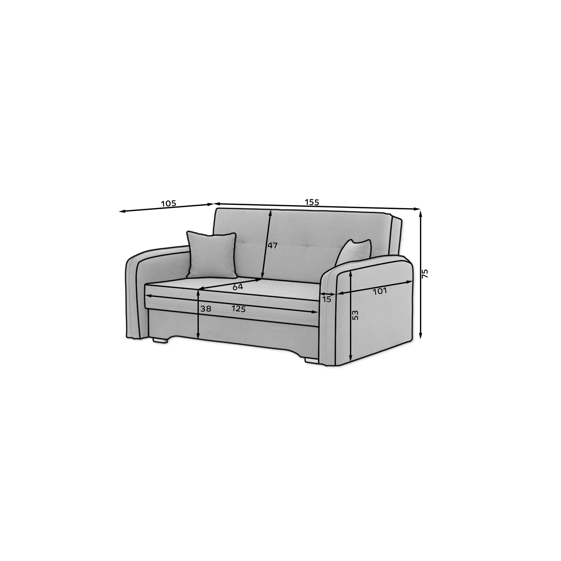 The pull-out bed's dimensions are: 155x105x75 cm and it will bring elegant style and functionality into any living room, bedroom or home office. Laine can be very quickly turned into a bed with the area of of 196x125 cm. It is surely an ideal option for evening film screenings.