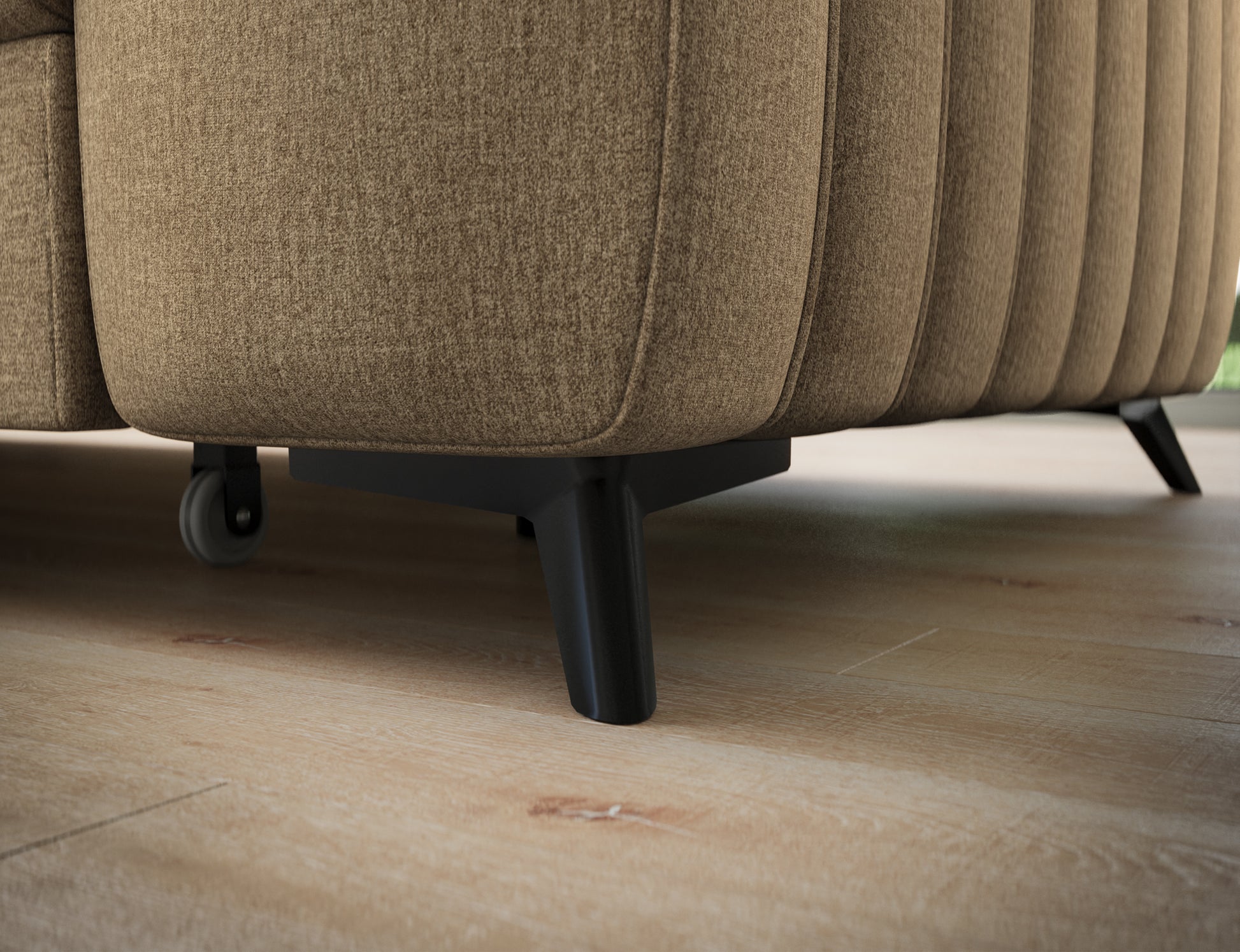 The seat is equipped with Type B wave springs and a combination of T3030 foam and profiled HR3030 high-resilience foam, ensuring optimal elasticity, durability, and long-lasting seating comfort even with intensive use. The backrest, filled with T2130 polyurethane foam, offers stable support and enhances everyday comfort. The Kanedo corner sofa features a practical sleeping function, while the Dolphin mechanism allows for quick and effortless unfolding.
