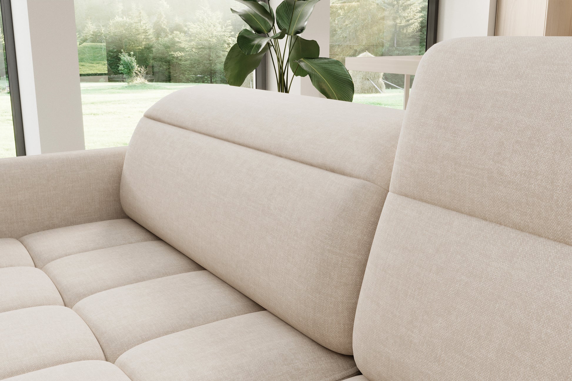Barea 3 Seater Storage Sleeper Chaise Sofa - Beige