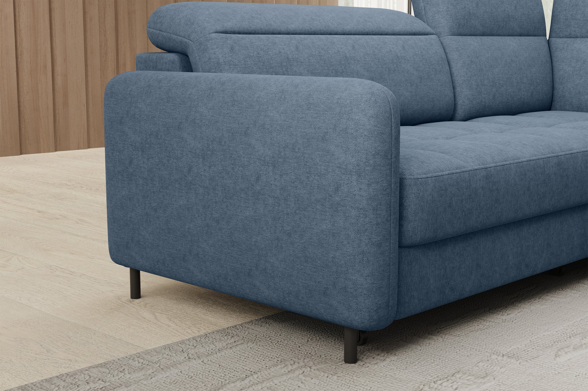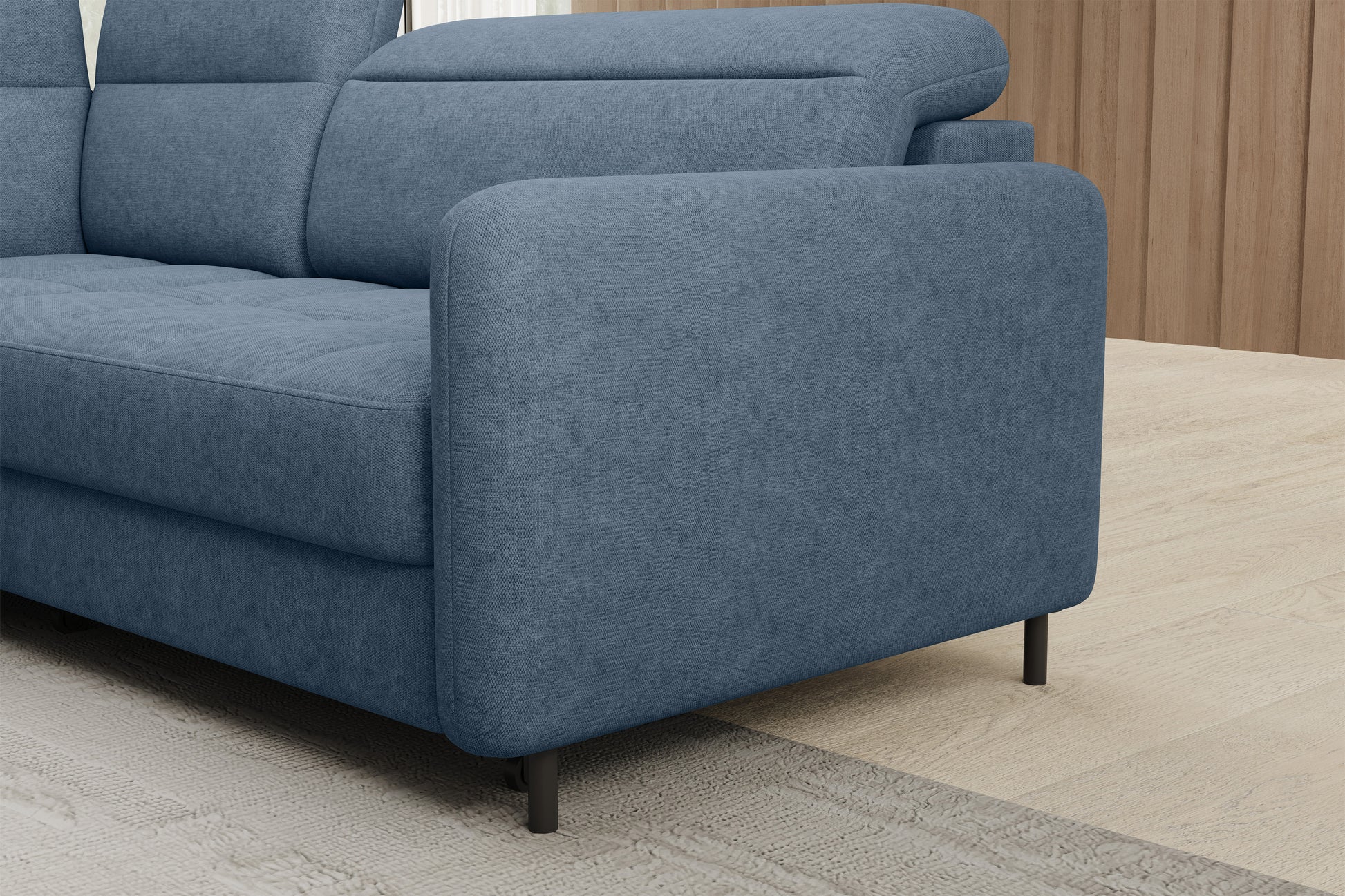 The Barea chaise sofa is an elegant and functional piece of furniture is equipped with adjustable headrests and metal black legs with a height of 10 cm. Its solid construction made from high-quality materials ensures durability, and the carefully contoured seat and backrest guarantee comfort and proper support for the back. The modern design of the Barea corner sofa makes it a perfect fit for both minimalist and more sophisticated interior arrangements. Available in various fabrics and color options, it is both aesthetic and functional, ideal for everyday relaxation and entertaining guests. Available in both left-facing and right-facing configurations. This item qualifies for FREE DELIVERY.