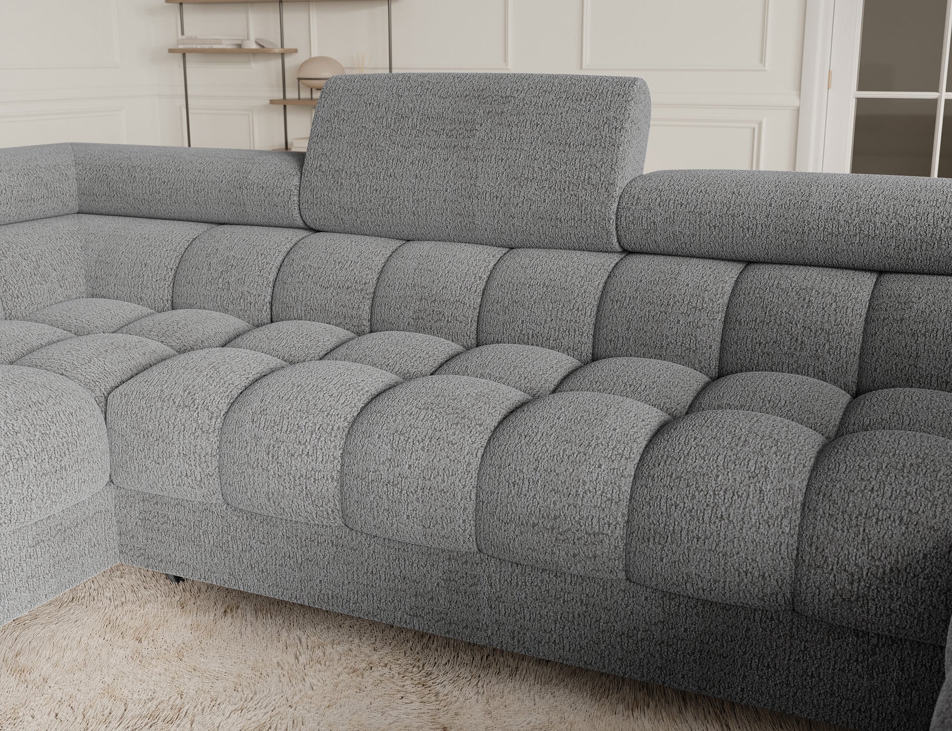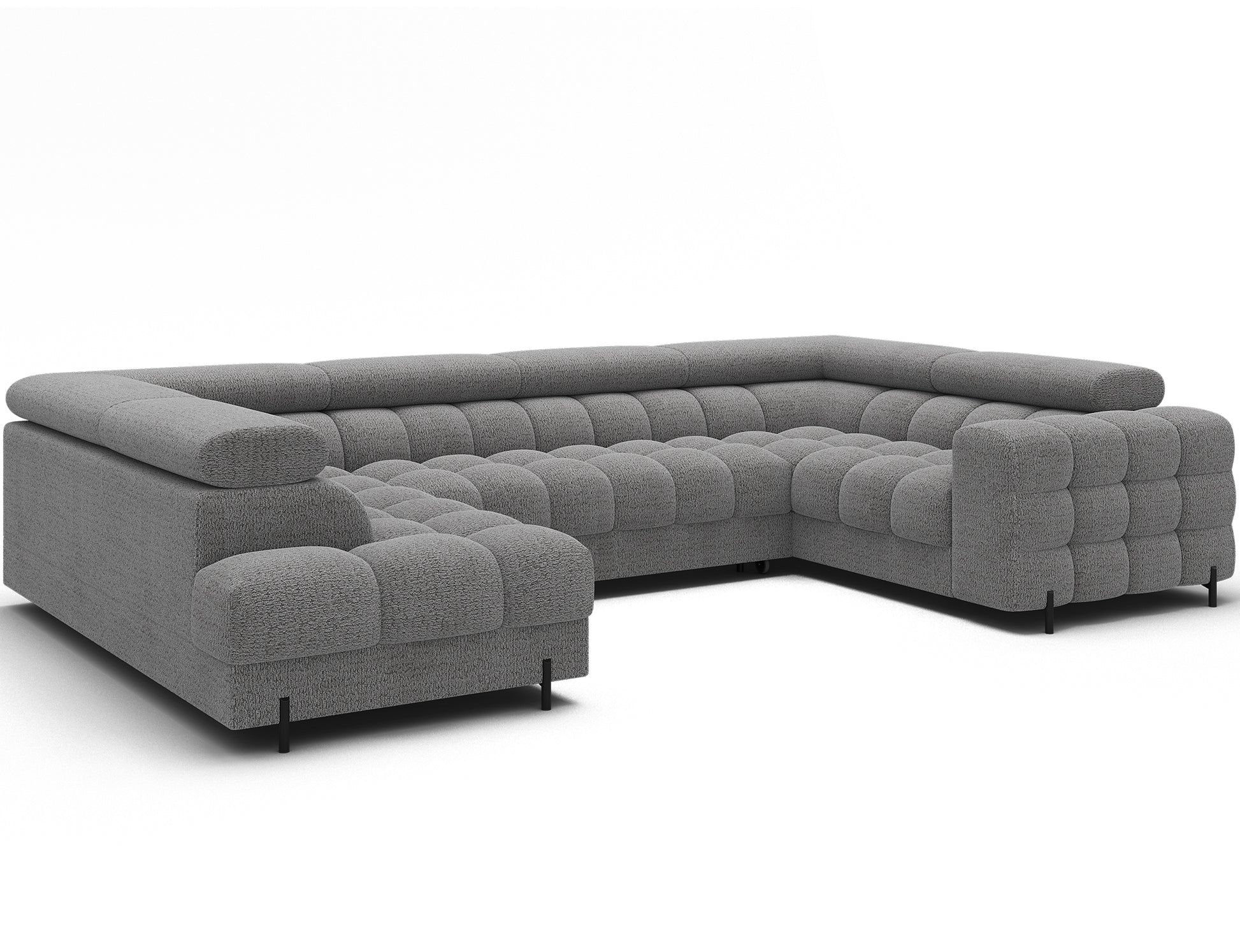 The Fectory sectional storage sleeper chaise sofa in a modern style is a perfect combination of functionality and aesthetics, equipped with type B wave springs and a double layer of foam – T3030 and profiled HR3030 – providing high seating and sleeping comfort, it features a practical sleeping function and a spacious bedding container, perfect for everyday use, the upholstered back allows free placement anywhere in the living room, and elegant black powder-coated metal legs complete the look, adding lightness and a contemporary touch, the Fectory sectional is a stylish and functional choice for those looking for a large, comfortable piece of furniture with added features. Available in both left-facing and right-facing configurations. This item qualifies for FREE DELIVERY.