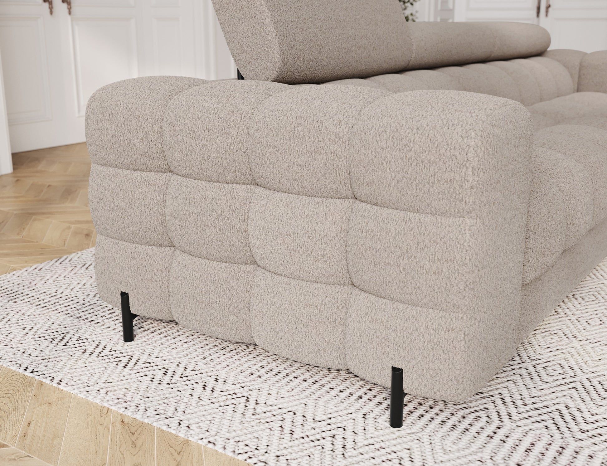 Stable black metal legs with a height of 9 cm add a modern touch and make cleaning underneath easier. With generous dimensions of the Festello sofa combines style, comfort, and solid craftsmanship, making it the perfect choice for any modern interior.