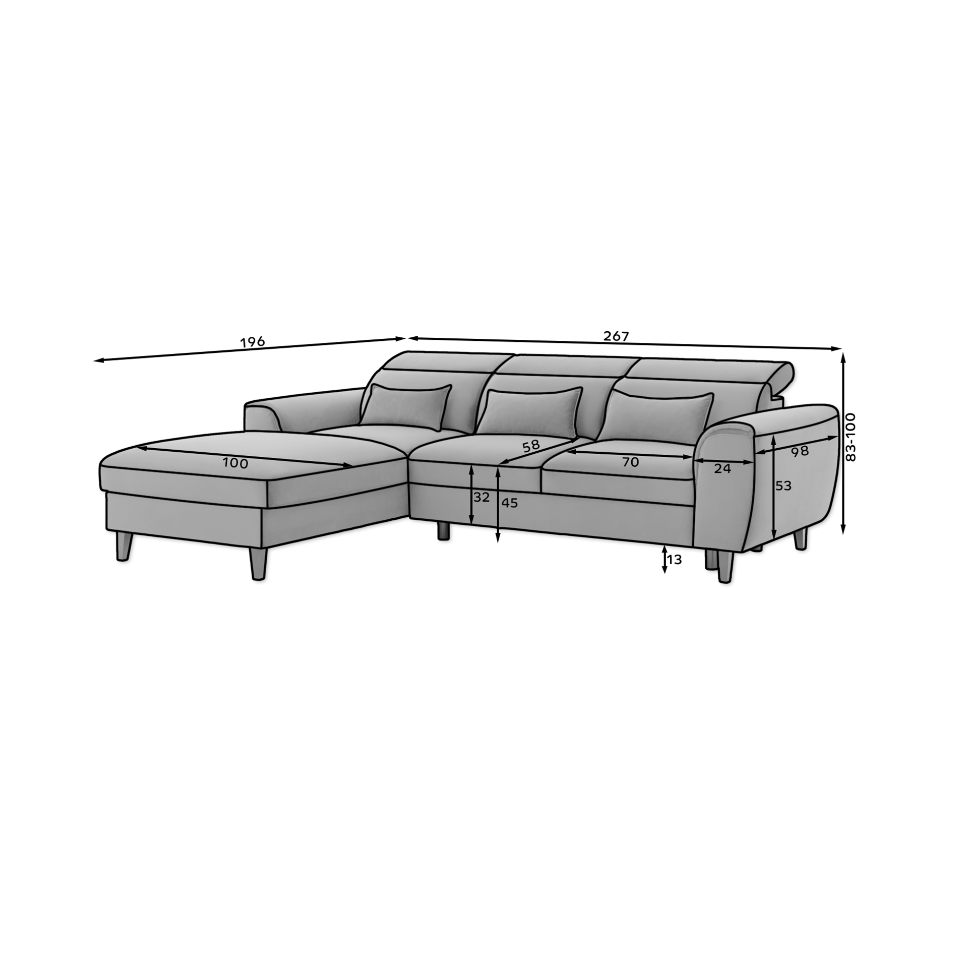 For your maximum comfort, Foble is equipped with adjustable headrests. An additional advantage of the corner sofa are the three decorative cushions offered in a standard version. Not only do they increase the comfort of the furniture, but they are also an aesthetically pleasing decoration that enhances its visual appeal. You can also place them on the armchairs to create a harmoniously coherent decor.