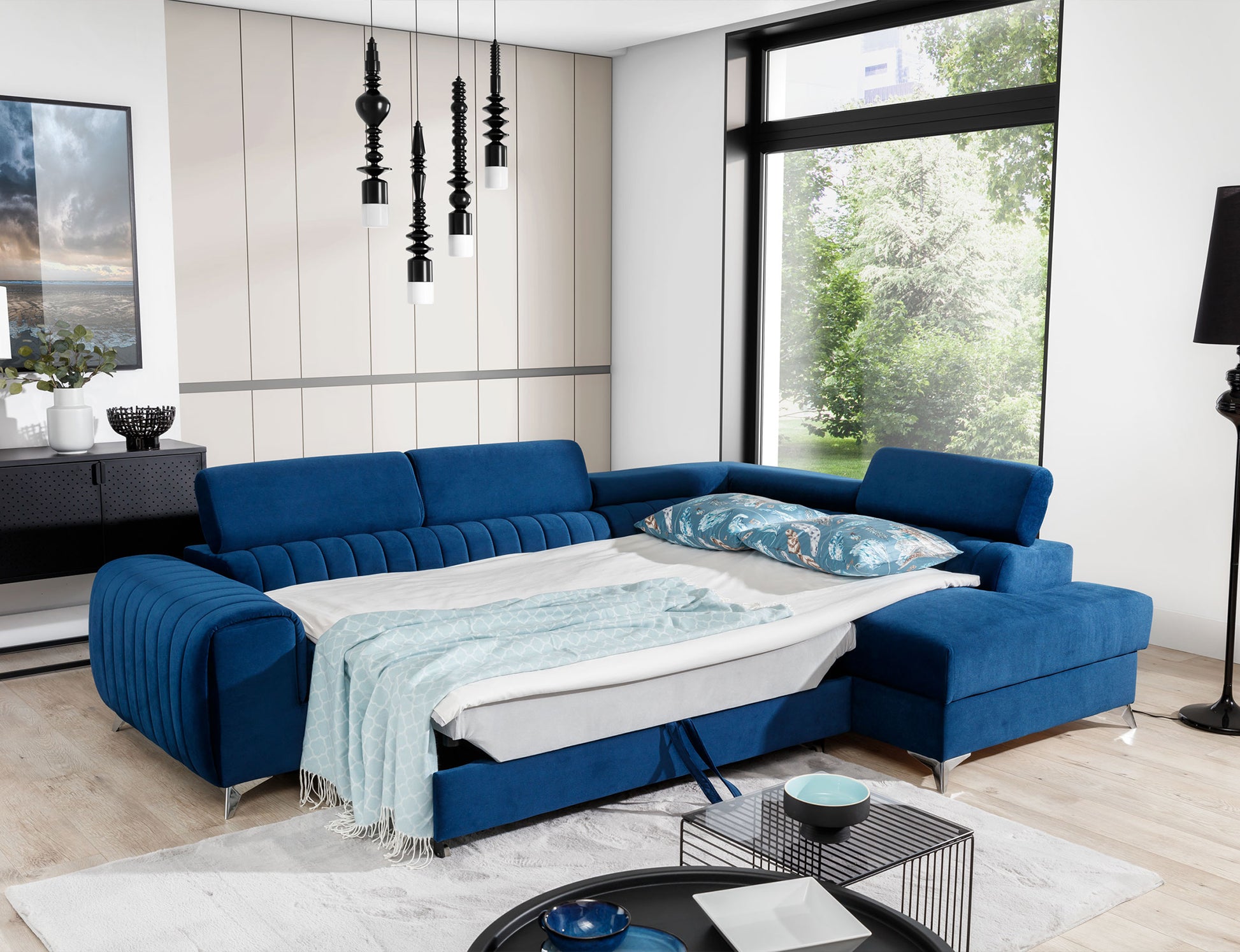 Laurence Sectional Storage Sleeper Chaise Sofa - Blue